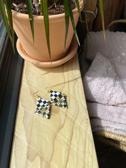 Checker Diamond Sunburst Earrings